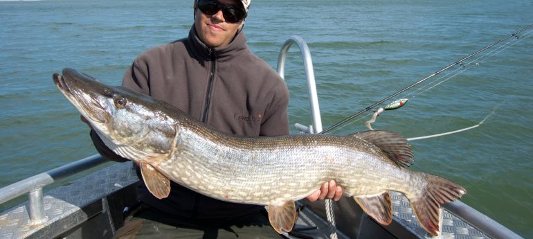 Nedan är en film som handlar om gäddfiske på grunt vatten.